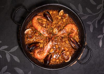 Hemos repetido, esta vez con un reto, la paella. Paella que estaba incluida en uno de sus menús: degustación de entrantes (No hay que elegir, es un surtido) Muy buenos. Paella a elegir (individual). En poco restaurantes he encontrado productos tan frescos em una paella (cuando «pelas» una gamba sin dificultad = producto fresco).
