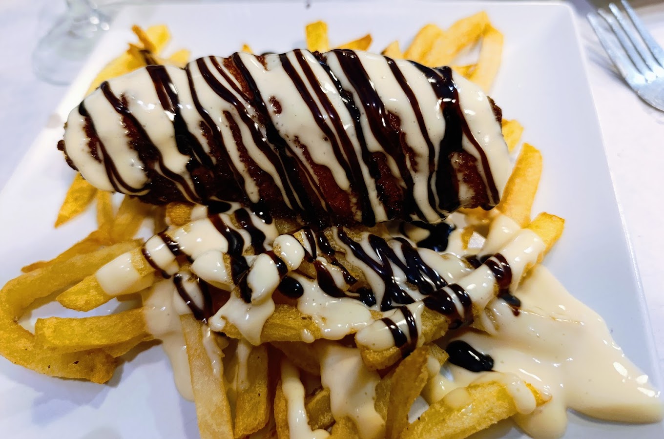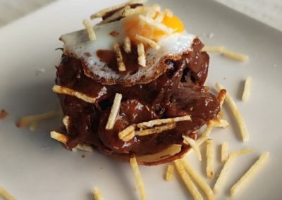 La Copla del Jamoncito, en Puerto Real, Cádiz, es un refugio donde la esencia de la tradición andaluza se fusiona con la modernidad, creando un ambiente vibrante y acogedor. Con sus paredes adornadas por recuerdos de la tierra y el mar, este pequeño bar es una oda al buen comer y beber. La luz suave, la madera que resuena con historias pasadas y el aroma a jamón ibérico flotando en el aire, invitan a los visitantes a sumergirse en una experiencia sensorial única. En cada rincón, La Copla refleja la calidez y el alma gaditana, donde la comida y la conversación se convierten en una danza de sabores y risas.