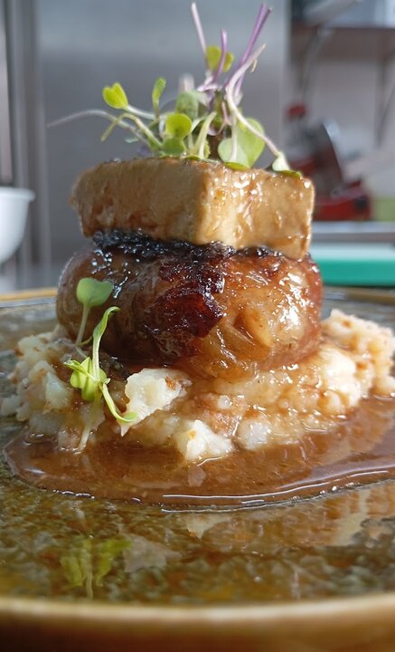 Estábamos por la zona, buscando un sitio donde comer bien, nos apareció en Google y nos guiamos por las reseñas. La verdad es que no se equivocaban las reseñas y acertamos totalmente! La comida está buenísima, de chef profesional 😋. Nos pedimos el menú degustación, primero un entrante: croquetas caseras, un primero: bacalao con verduritas escalivadas, y segundo: un solomillo buenísimo! El postre fue una maravilla. Experiencia 10 de 10, recomiendo 100% este restaurante, comida de calidad, a un precio razonable 👌🏻👌🏻. Destacar también la atención que fue exquisita, y en verdad es lo que tiene que ser 🤩