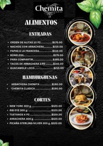 Chemita Menu Alimentos Enviar comentario Cancelar la respuestaTu dirección de correo electrónico no será publicada. Los campos obligatorios están marcados con *Comentario * Nombre * Correo electrónico * Web Guarda mi nombre, correo electrónico y web en este navegador para la próxima vez que comente. Δ