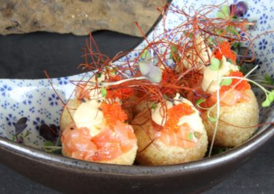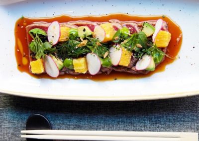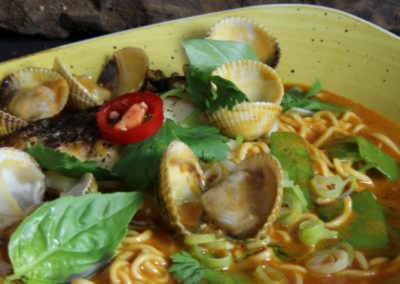 El Flaco es un restaurante de cocina fusión asiática en el barrio de Chamartín, Madrid. Su propuesta culinaria combina sabores tailandeses con influencias de otras cocinas asiáticas, ofreciendo platos como baos de panceta, curry verde de mar y nuestro Singapore chily crab. El local presenta un ambiente acogedor y moderno, con una cocina abierta que permite a los comensales observar la preparación de los platos. La carta es concisa pero variada, con opciones que destacan por su sabor y presentación. El servicio es atento y profesional, contribuyendo a una experiencia gastronómica agradable. El Flaco es una opción ideal para quienes buscan explorar sabores asiáticos en un entorno íntimo y sin pretensiones.