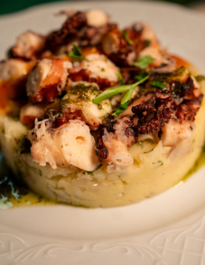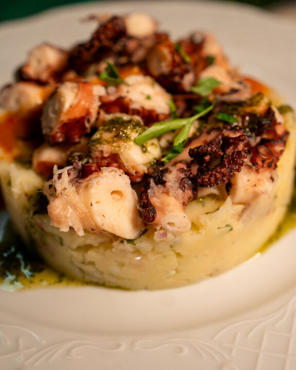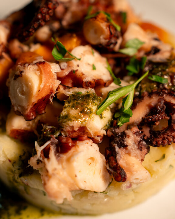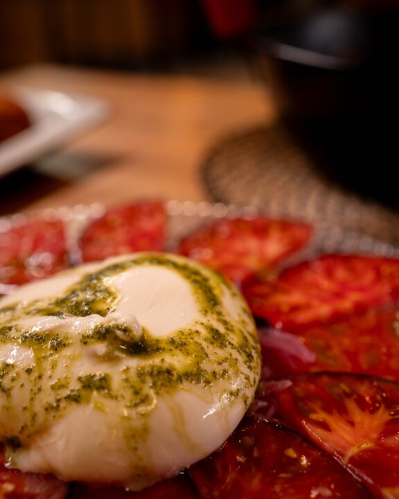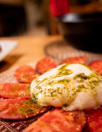 La carta incluye entrantes variados —ensaladas frescas, bacalao encebollado— y postres caseros como torrija con helado o sorbete de limón al cava.