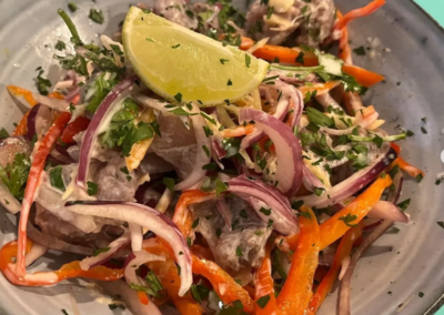 En un entorno acogedor con aire tropical, podrás disfrutar de platos caseros elaborados con producto local y un enfoque internacional. Ceviches, currys, buñuelos y opciones veganas o sin gluten pensadas para todos los gustos.