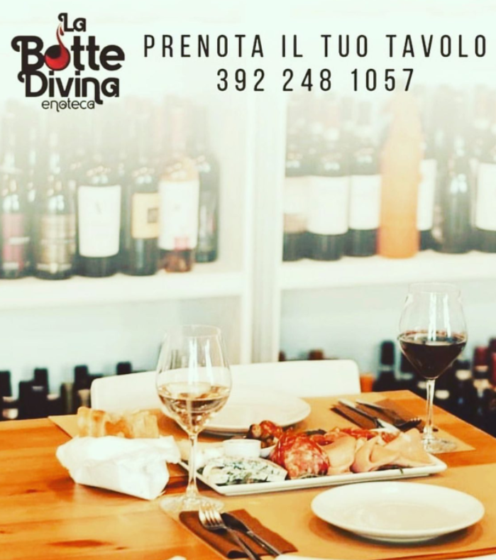 La Botte Divina è un’enoteca con oltre 300 etichette differenti tra vini e distillati, selezionati personalmente dai proprietari Giuseppe Schiavone, sommelier AIS, e Marianna Coppola, Enologo e sommelier AIS. Ambiente sobrio ed accogliente, taglieri caldi e freddi, piccola gastronomia eccellente. CONSIGLIATISSIMO