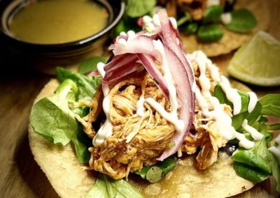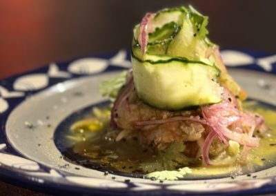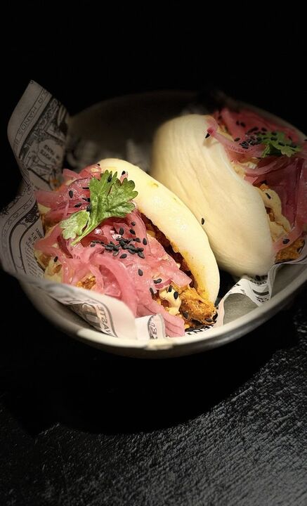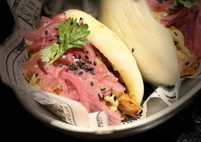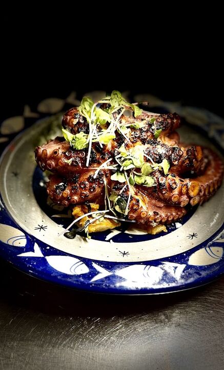 La propuesta culinaria de Lynch combina influencias mexicanas y asiáticas, destacando platos como la burrata rellena de pesto de almendras fritas, el bocata de calamar estilo Lynch con pan brioche y mahonesa de kimchi, las croquetas de langostinos y guajillo, y el pulpo en salsa macha sobre papa revolcona con chorizo y mojo verde. Además, ofrecen opciones como el aguachile de langostino con jugo de lima y guacamole, y el bao de cochinita pibil.